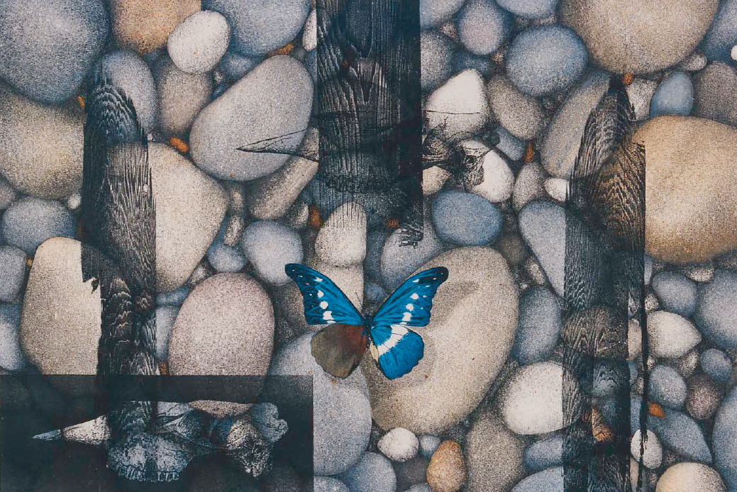 「Grasshopper」 535×420mm スチプリント・シルクスクリーン・コラージュ 2001年